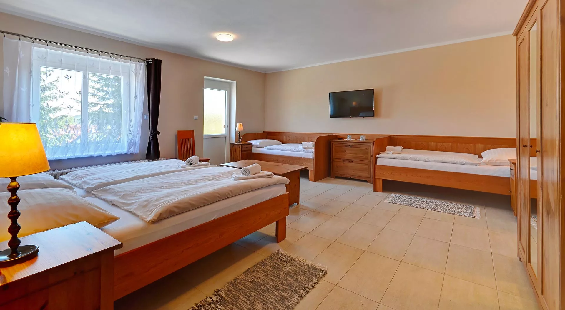 Nabízíme ubytování v osmi útulných pokojích s celkovou kapacitou 23 lůžek. Ideální pro páry, rodiny i firemní týmy.